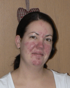 Ich selbst bekam die Diagnose Rosacea im Alter von 25 Jahren. Damals verließ ich mich auf die Aussagen des Hautarztes, dass man selbst nichts tun könne, außer auf den Sonnenschutz zu achten und nicht zu scharf zu essen. Ein paar Pröbchen für teure Cremes aus der Apotheke gab es noch und ab diesem Zeitpunkt musste ich 2 – 3x im Jahr Antibiotika schlucken und antibiotische Salben auftragen, weil Pusteln und Rötungen so schlimm waren, dass es nicht anders ging. In den Schwangerschaften konnte ich keine Antibiotika nehmen. Die Entzündungen taten furchtbar weh und die Pusteln waren mit Make up kaum zu kaschieren. Über 10 Jahre habe ich mich von Schub zu Schub gehangelt und unzählige „Mittelchen“ ausprobiert – ohne Erfolg.
